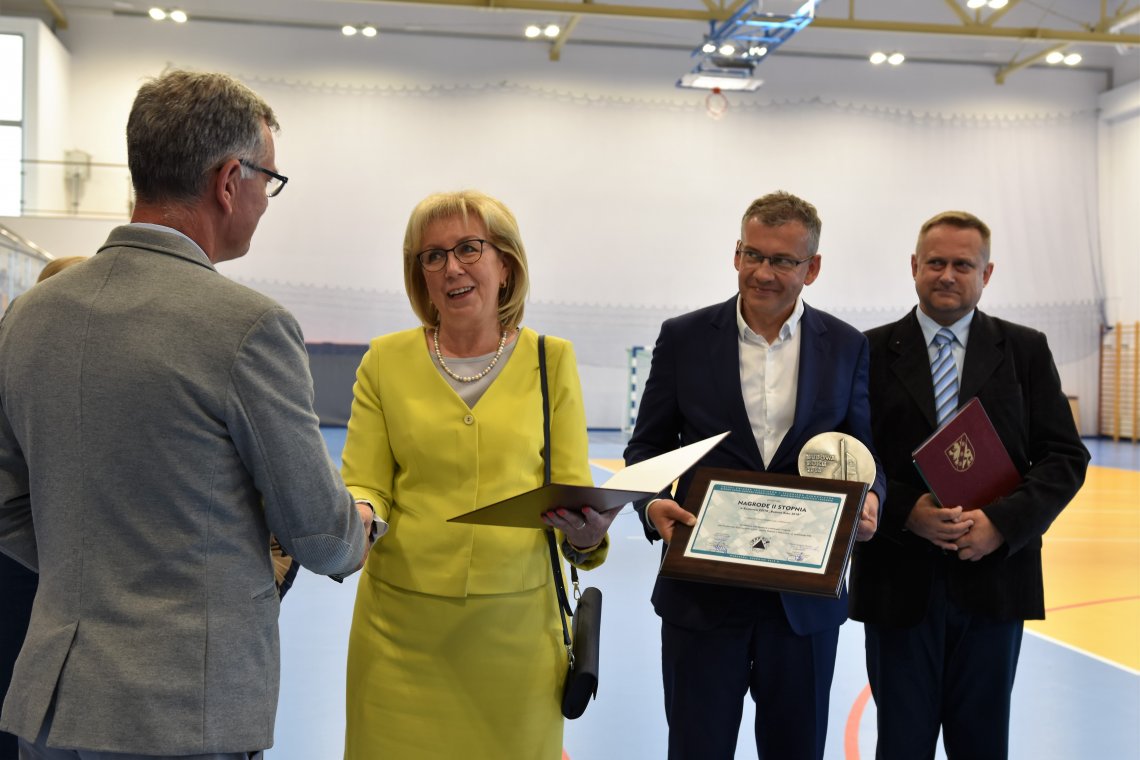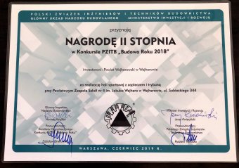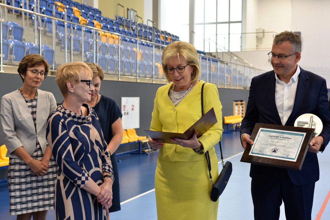 – Gdy pojechaliśmy na Galę rozdania nagród do Warszawy nie wiedzieliśmy jeszcze czy jesteśmy w gronie laureatów – tłumaczy Starosta Wejherowski Gabriela Lisius. – Nasz obiekt znalazł się w gronie bardzo dużych inwestycji, wartych kilkadziesiąt milionów złotych. Stąd tym większa była nasza radość, gdy okazało się, że otrzymaliśmy nagrodę II stopnia – czyli tylko krok dzielił nas od „Oscara Budowlanego”. Muszę zaznaczyć, że proces oceny zgłaszanego obiektu jest kilkustopniowy, a kryteria oceny wysokie i dotyczą one rozwiązań konstrukcyjnych i funkcjonalnych, jakości wykonawstwa, zastosowania nowoczesnych technologii, wpływu inwestycji na środowisko naturalne, bezpieczeństwa, warunków pracy oraz organizacji procesu budowy i czasu realizacji. Nasza hala została zbudowana według najnowocześniejszych technologii i z wykorzystaniem innowacyjnych rozwiązań. I nie chodzi wyłącznie o samą halę, ale trybuny, pomieszczenia techniczne, sale i całe zaplecze. To właśnie doceniła konkursowa komisja oceniająca. Jesteśmy dumni z tej nagrody, tym bardziej, że tylko dwa obiekty szkolne otrzymały w tym roku ten zaszczytny tytuł. Ponadto trzeba podkreślić, że większość inwestycji było finansowanych przez międzynarodowe firmy komercyjne (dysponujące ogromnymi funduszami), a tych finansowanych przez samorządy było niewiele. Stąd tym większy jest nasz sukces, a otrzymana nagroda ukoronowaniem naszych wysiłków – podkreśla starosta.