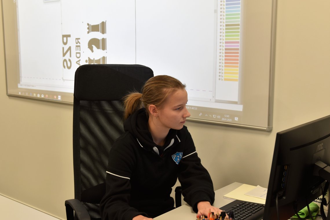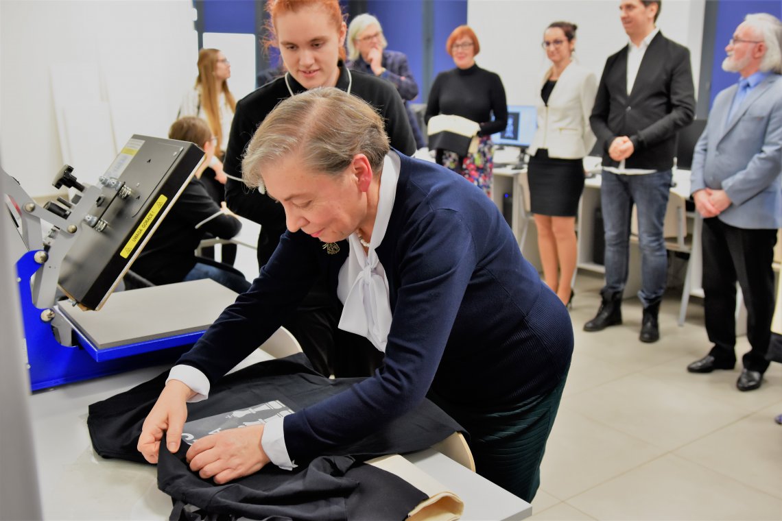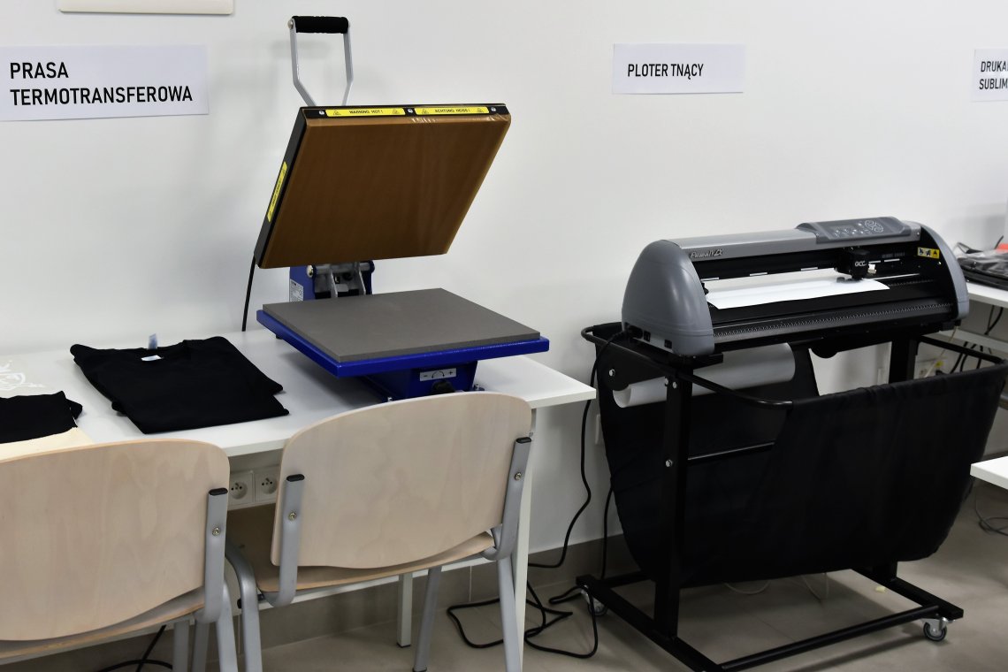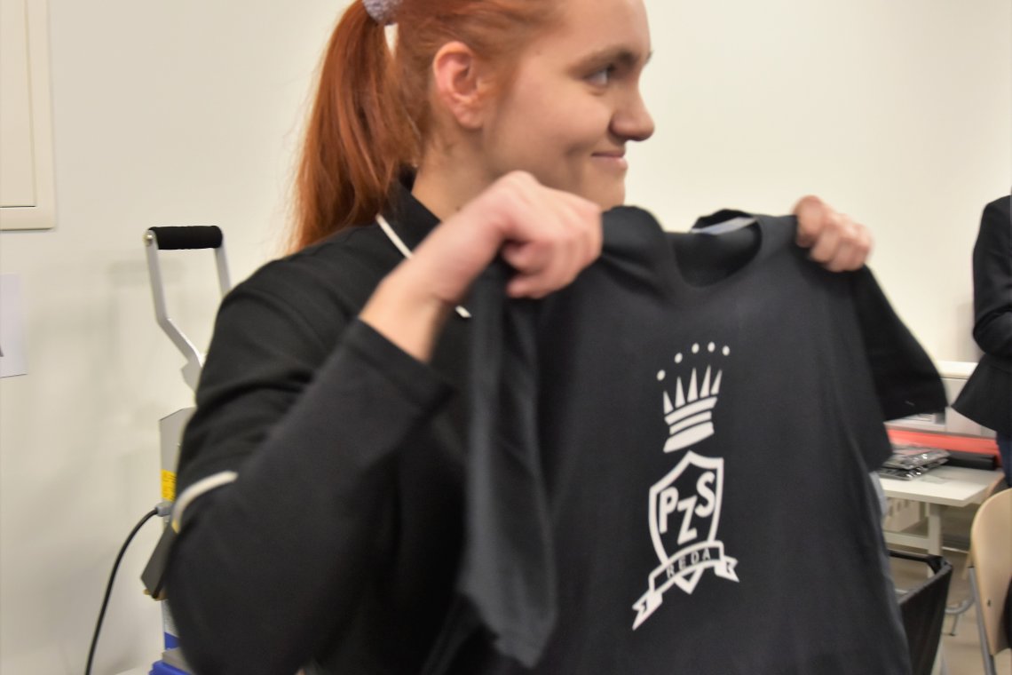 Dokonują wydruku próbnego, poznają zasady różnych technik drukowania cyfrowego, mają możliwość praktycznego przetestowania druku sublimacyjnego oraz technik transferowych.