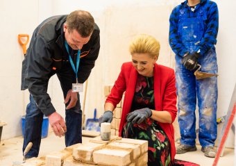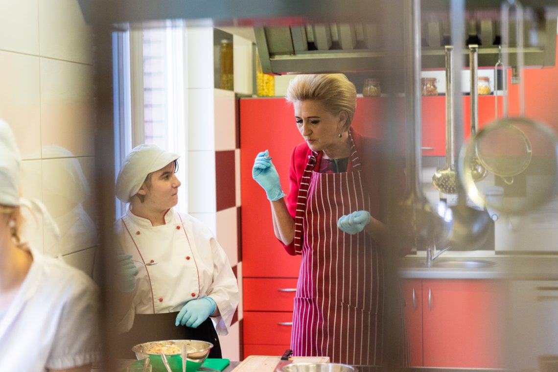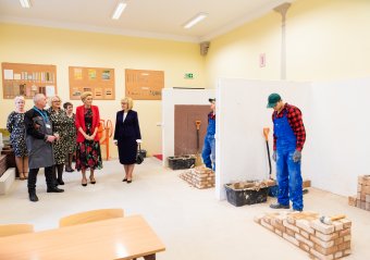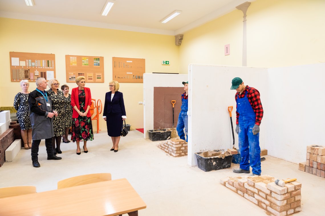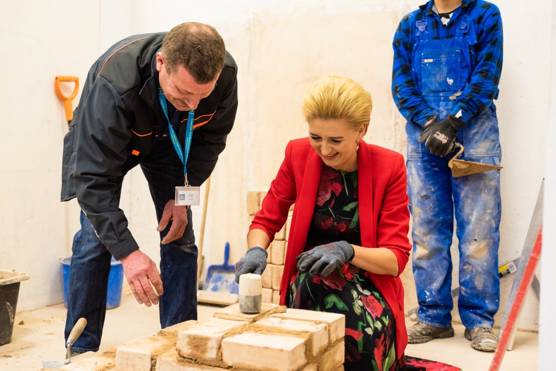 Podczas odwiedzin Pani Prezydentowa miała okazję zwiedzić placówkę, pracownie specjalistyczne, sale edukacyjne i rehabilitacyjne dla najmłodszych podopiecznych ośrodka, zapoznać się z metodami kształcenia teoretycznego i praktycznego, a także wziąć udział w lekcji pokazowej na kierunkach murarz-tynkarz, pracownik obsługi hotelowej i kucharz. Pierwsza Dama za pomocą Skype'a rozmawiała również z grupą uczniów przebywających na praktykach w Sewilli, uczestniczyła w lekcji języka niemieckiego oraz spróbowała swoich sił w kuchni i przy stawianiu muru.