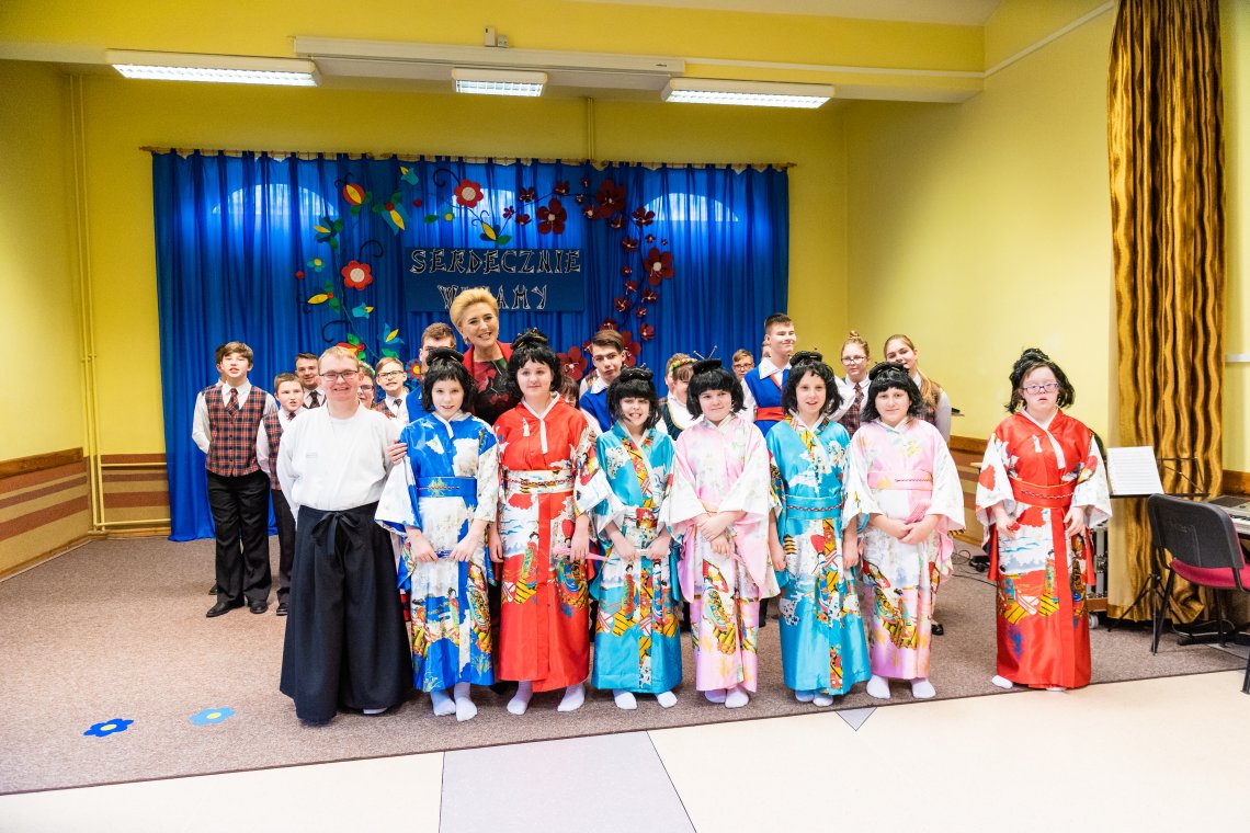 Z okazji wizyty uczniowie i wychowawcy przygotowali program artystyczny zainspirowany historią i kulturą Japonii. To nawiązanie nie było przypadkowe. Warto bowiem przypomnieć, że dzięki współpracy Polskiego Komitetu Ratunkowego we Władywostoku z Japońskim Czerwonym Krzyżem oraz pomocy materialnej udzielonej przez rząd japoński, w latach 1919-1922 ewakuowano z Syberii blisko 800 polskich dzieci. Około 300 sierot trafiło do Zakładu Wychowawczego mieszczącego się w latach 1923-1928 w budynkach PZKS w Wejherowie. Piękny występ był okazją do podzielenia się przez Pierwszą Damę swoimi wspomnieniami z odbytej niedawno wizyty w ośrodku Fukudenkai w Tokio, który przygarnął polskie dzieci.