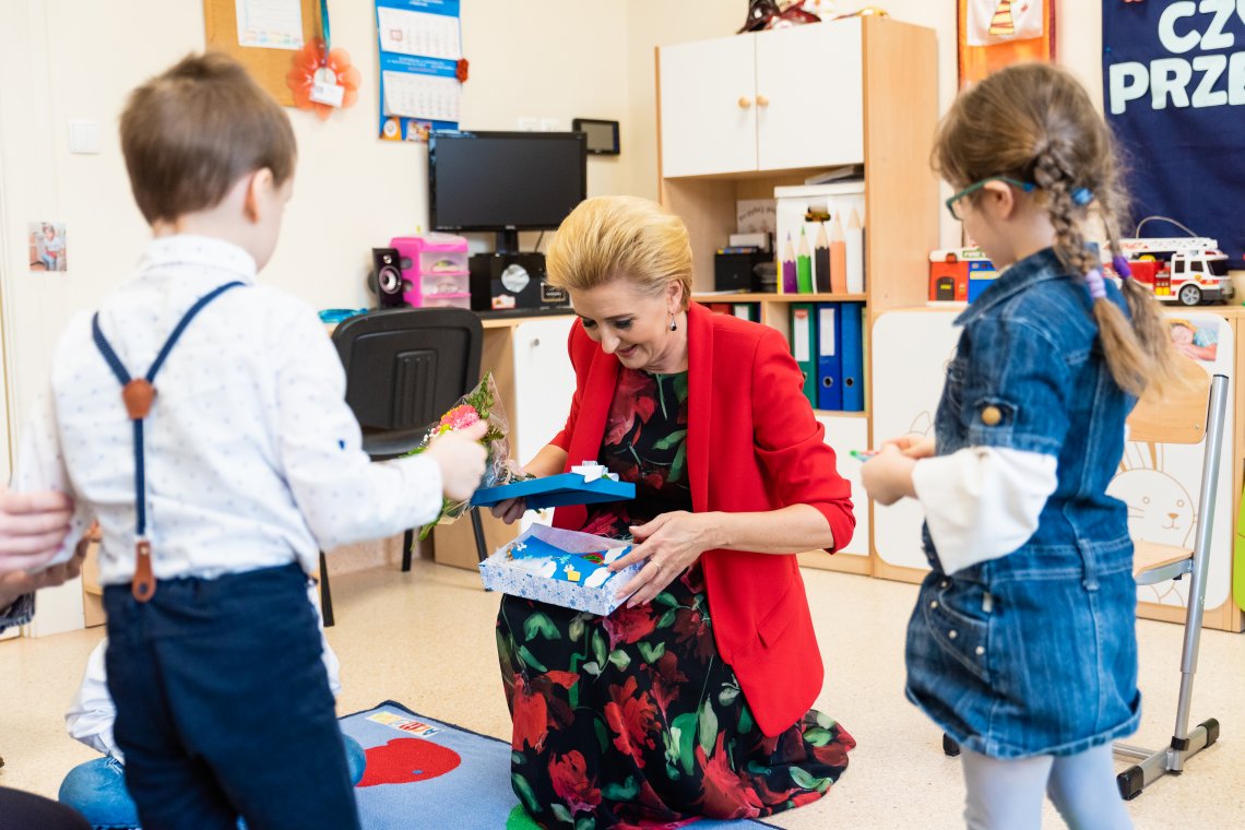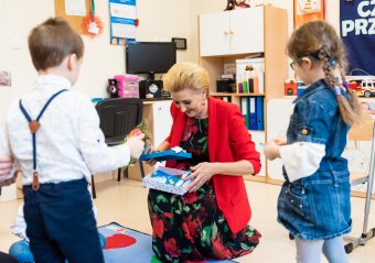 Na koniec wizyty Pierwsza Dama spotkała się z najmłodszymi wychowankami ośrodka, którym przeczytała wiersz „Chory kotek”. Przedszkolaki chętnie opowiadały o ulubionych bohaterach bajkowych i dzieliły się swoimi zabawkami.