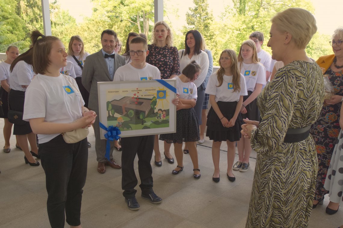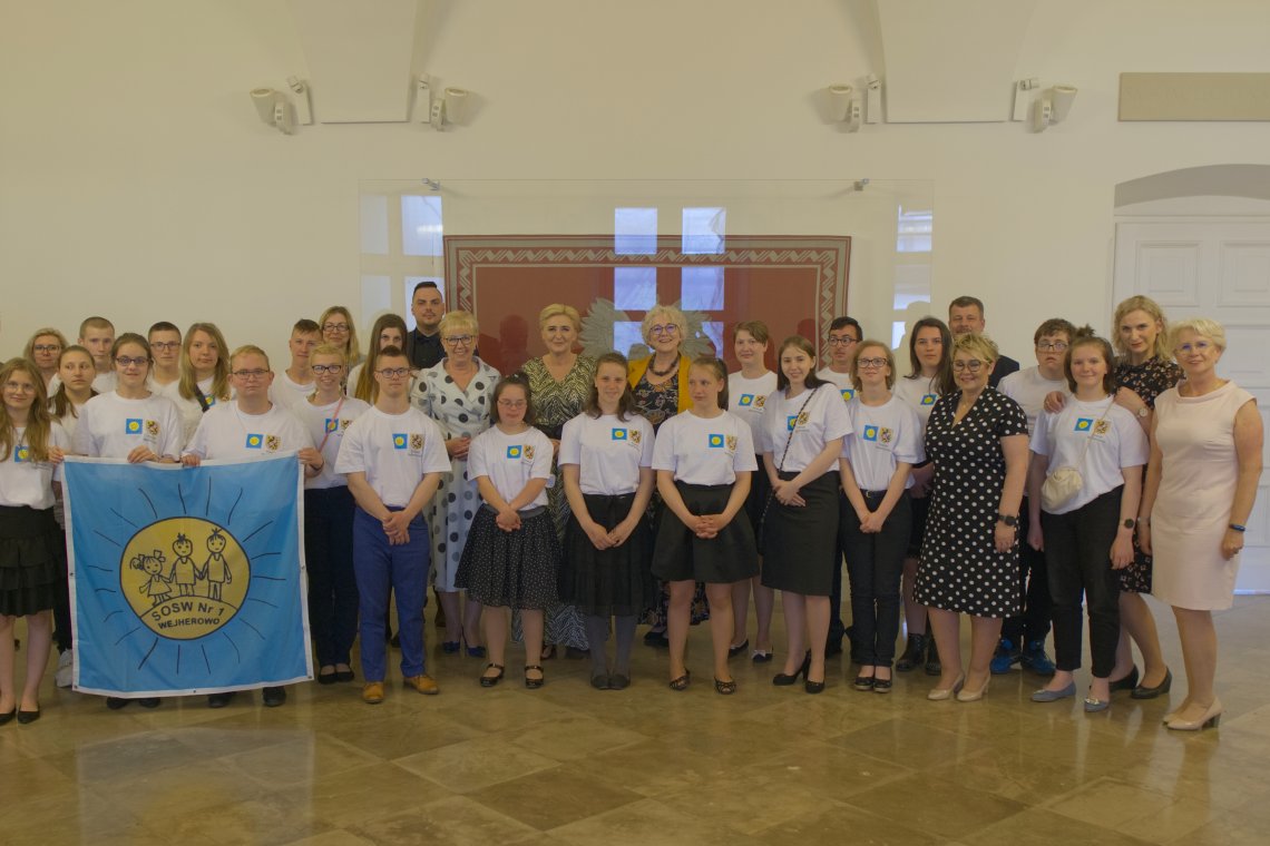 Wychowankowie Powiatowego Zespołu Kształcenia Specjalnego w Wejherowie wraz z pedagogami i Starostą Wejherowskim gościli w Pałacu Prezydenckim i spotkali się z Małżonką Prezydenta RP Agatą Kornhauser-Dudą.