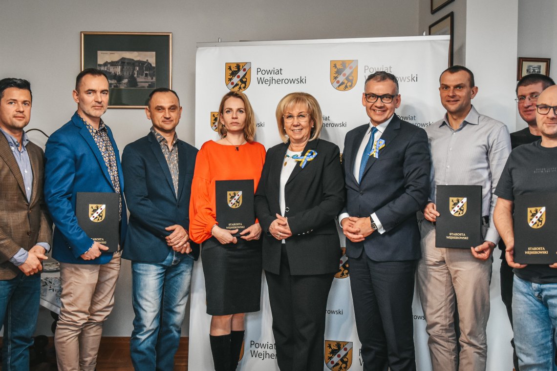 Starosta Wejherowski Gabriela Lisius i Wicestarosta Jacek Thiel podpisali umowy promocyjne z klubami i stowarzyszeniami sportowymi z terenu powiatu wejherowskiego na pierwsze półrocze.