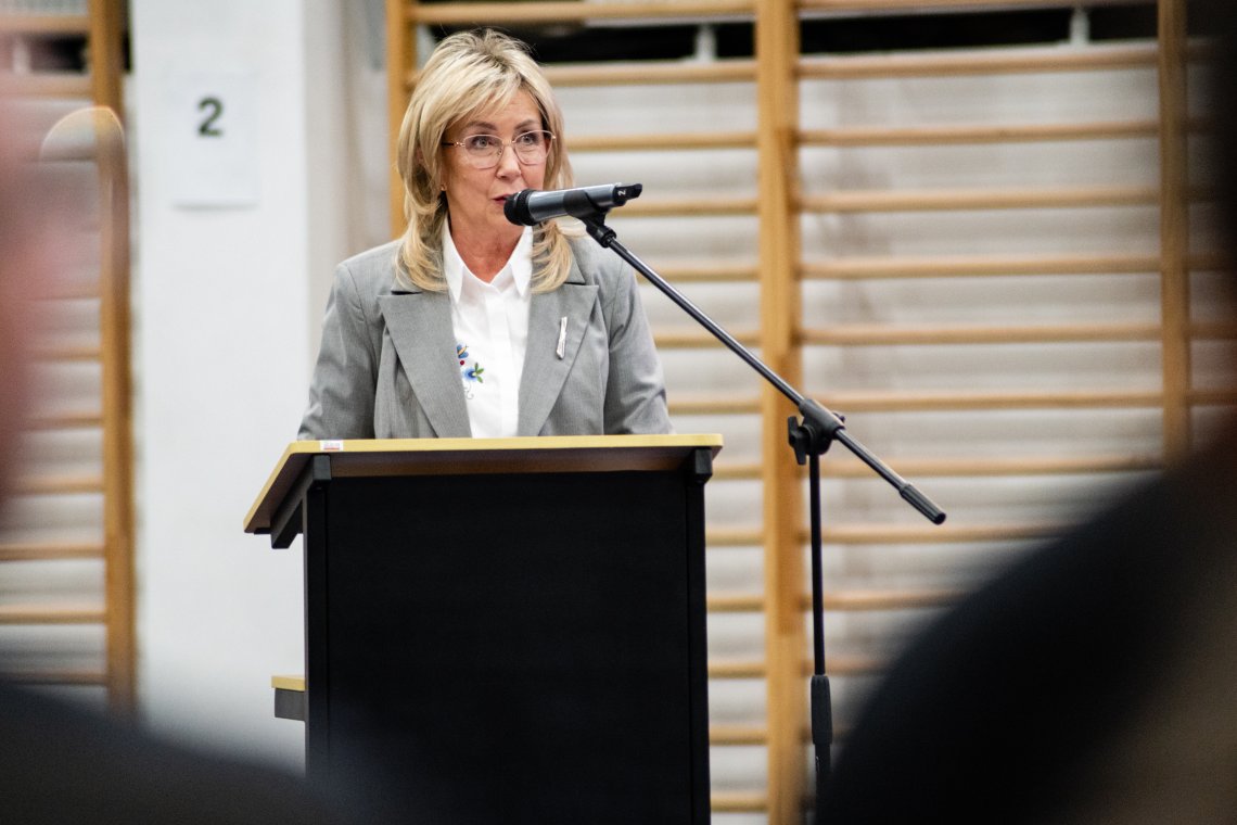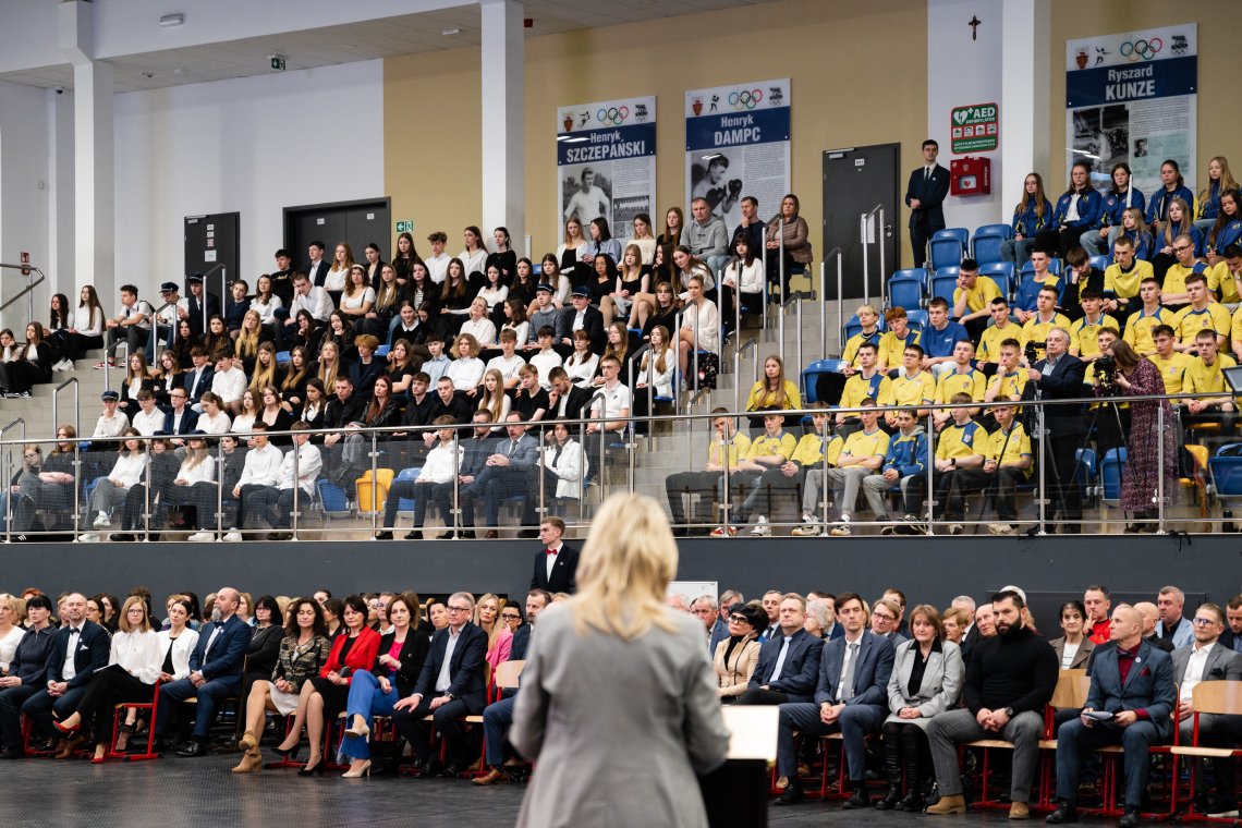 – Dzisiaj rzucamy Wam Droga Młodzieży wyzwanie. Galeria olimpijczyków prezentowana w tej hali, jak i na zewnątrz nie jest zamknięta, wręcz przeciwnie, jest otwarta i czeka na wasze olimpijskie wyniki, sukcesy i medale. Wierzę, że za parę lat będziemy mieli kolejnego olimpijczyka z powiatu wejherowskiego, może właśnie ucznia z tej szkoły – powiedziała Starosta Wejherowski Gabriela Lisius.
