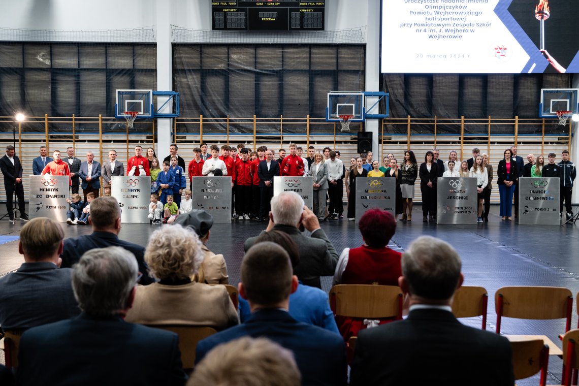 – Imieniem tym utrwalamy olimpijczyków zasłużonych dla Ziemi Wejherowskiej: Henryka Dampca, Henryka Szczepańskiego, Ryszarda Kunze, Huberta Skrzypczaka, Martynę Dąbkowską, Martę Jeschke i Marcina Chabowskiego. Niech to imię będzie dla Was Droga Młodzieży inspiracją do rozwijania zainteresowań sportowych oraz wytężonej pracy, a także zachętą do startu na najważniejszej imprezie sportowej na świecie – powiedziała Starosta Wejherowski Gabriela Lisius.