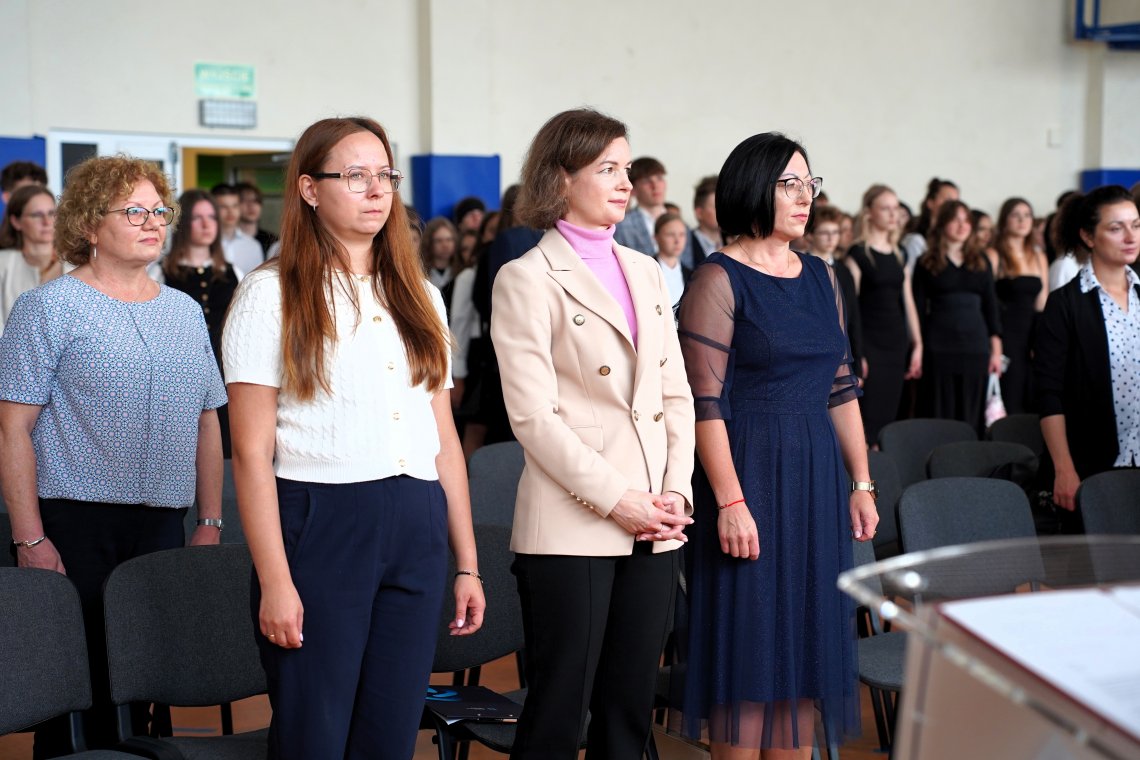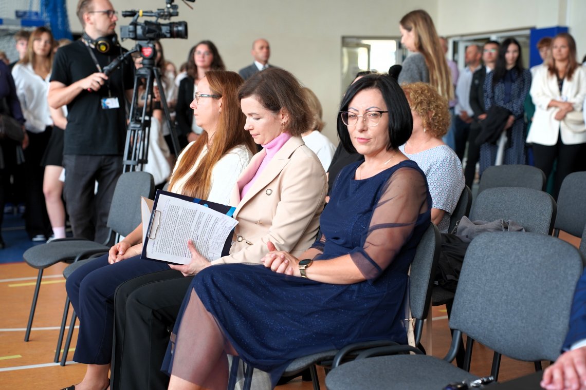 W wydarzeniu udział wzięli przedstawiciele władz Powiatu Wejherowskiego – Wicestarosta Witold Reclaf oraz Etatowy Członek Zarządu Powiatu Wejherowskiego Iwona Szczygieł, którzy złożyli życzenia pomyślności i sukcesów w nowym roku szkolnym dla uczniów, nauczycieli oraz całej społeczności szkolnej.