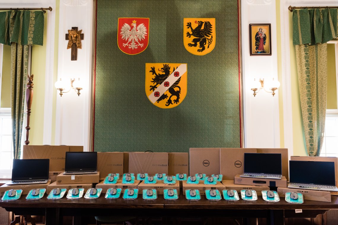 Nie czekając na rozpatrzenie wniosku, dokonano niezwłocznie rozpoznania potrzeb szkół w przedmiotowym zakresie ilościowym i jakościowym. Na tej podstawie zdefiniowano potrzebę zakupu sprzętu wyższej jakości, zdatnego do obsługi wyższej klasy oprogramowania i w dniu 4 kwietnia 2020 r. zakupiono 28 zestawów komputerów przenośnych ze sterownikami bezprzewodowymi.